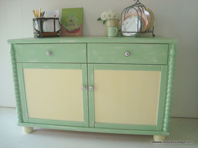 As I've mentioned before I am not a good photographer (actually I probably don't need to spell that out, lol!) and I had a hard time capturing the true colour of this piece, which is why you see about 10 different shades of green in my photos! You'll have to trust me that it is lovely, exactly what I wanted, and my perfect 'vintage green'. A couple that have won my heart in the past are Porter's Paints 'Glossodia' and 'Palm Green'. But this mix is better :)